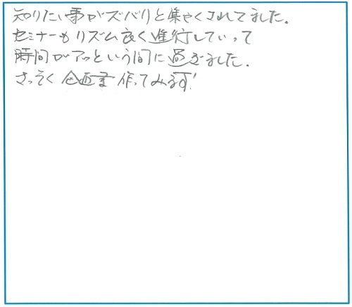 セミナーもリズム良く進行していって時間がアッという間に過ぎました。