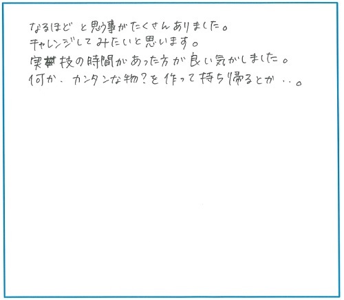 実技の時間があった方が良い気がしました。