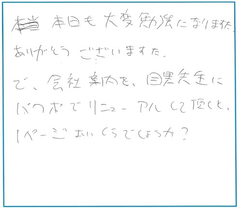 で、会社案内を、目黒先生にパワポでリニューアルして頂くと、1ページおいくらでしょうか?