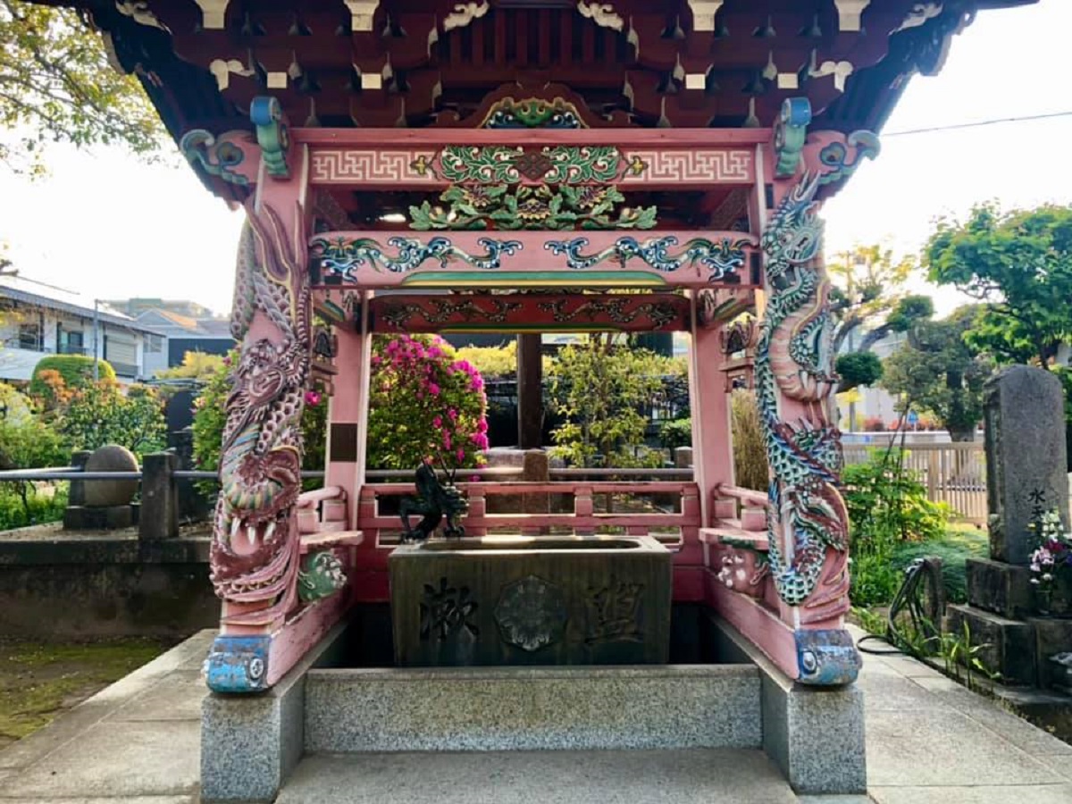 いつも、すごいなぁ!と、その豪勢さに感心するのは、横浜市の日吉にある「金蔵寺」の手水舎です。