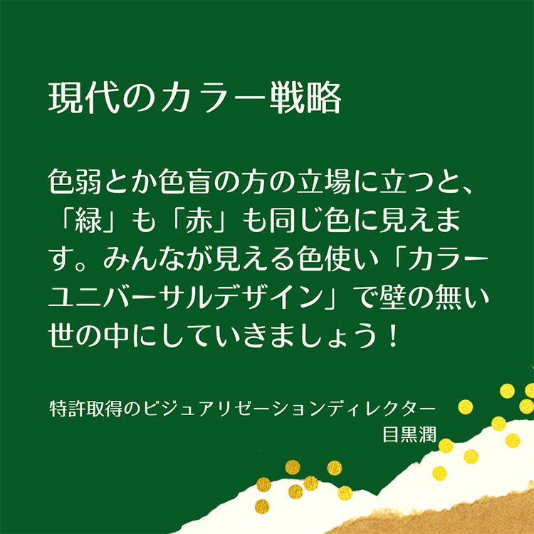 残り95%の大多数の方々が普通に見える方々なので、世の中的には、大多数の目でプレゼン資料やら看板やらポスターが作られていますが、私はそれは間違っていると思います。