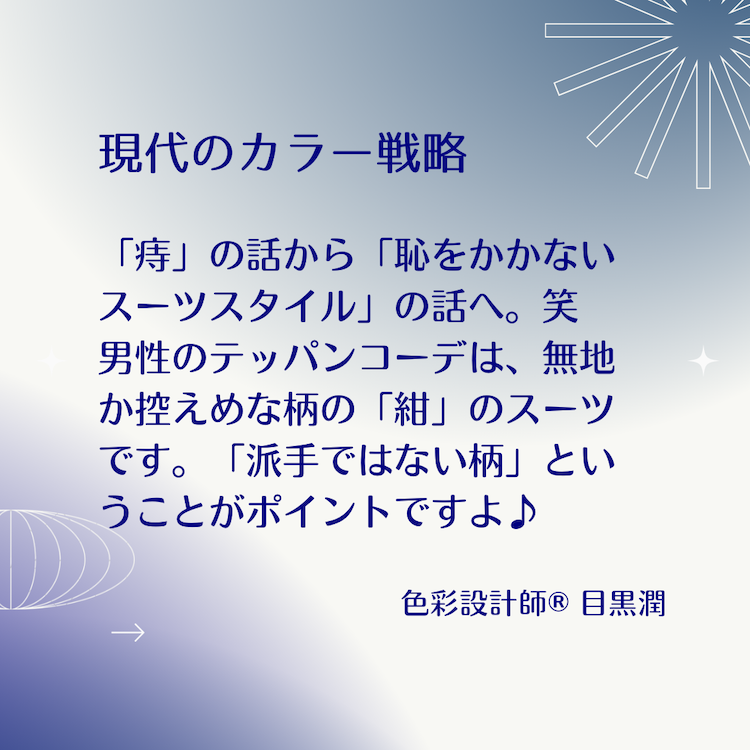 ※本日のお話は女性にも当てはまりますが、女性の場合は、もっと華やかでもOKです!