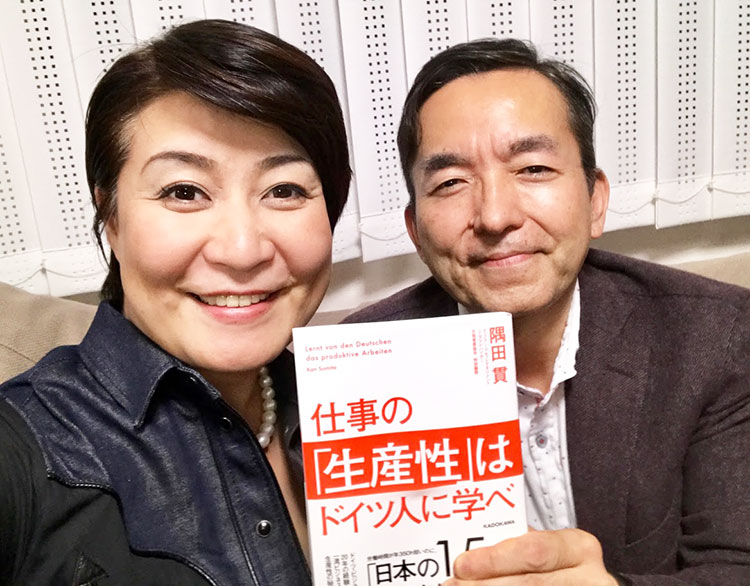 俳優の別所哲也さんが司会を務める番組「報道ライブINsideOUT/【仕事の生産性はドイツ人に学べ】」で、ドイツ人で金髪の、とても可愛らしい外見の翻訳家マライ・メントラインさんと共演するにあたり、ネクタイの「ビジネスカラー戦略®」を一緒に組み立てました。