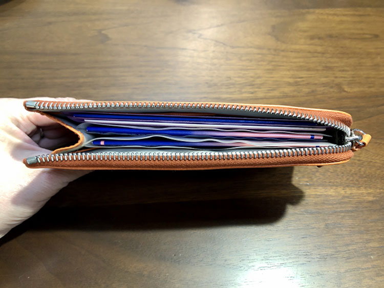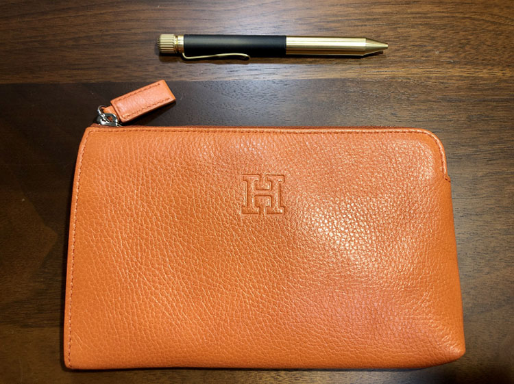ちなみにこのヒロフのオレンジ色のポーチ、ヒロフなので高品質なレザーなのは折り紙つきですが、手触りがとってもやわらかくて、手に取ると安心するくらいの、優しい触り心地なのです。